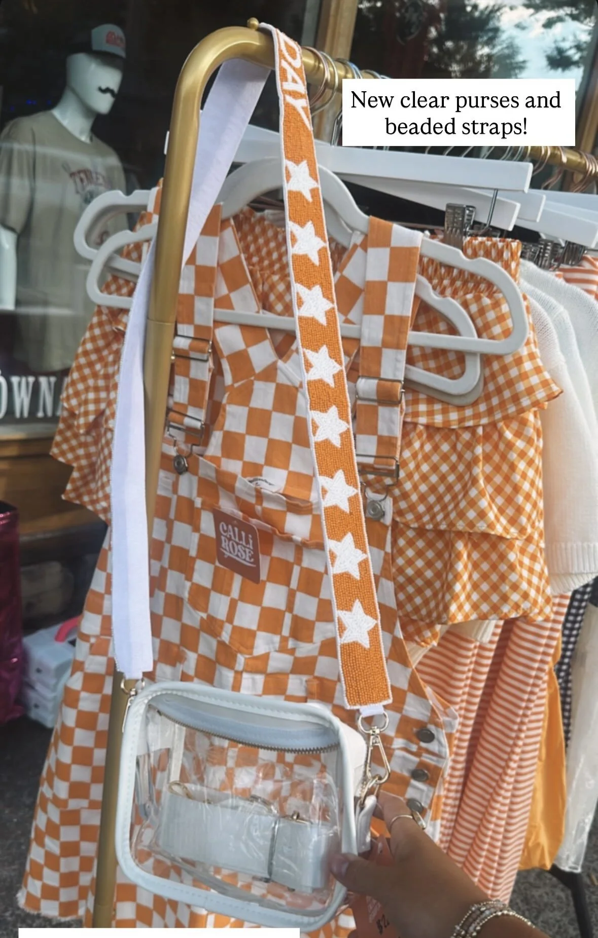 Categories: All Shop All Game Day Apparel Sorority Merch New Arrivals Apparel Hats All / Game Day Snap Collared Henley Sweatshirt $48.00 Game Day Stripe Zip Pullover $50.00 Clear Stadium Purse $28.00 Beaded Purse Strap $22.00 Game-day Teddy Sweater Top $40.00 Striped Orange and White Set $58.00 Pink Tennessee Vols Tee $49.00 Checkered mini skirt $40.00 Orange Corset Tank $28.00 Smocked Bodice Bubble Hem Tube Dress $52.00 Gameday Overall dress $50.00 Smokey Baby Tee $45.00 "Tenn" Pullover Mock Neck $45.00